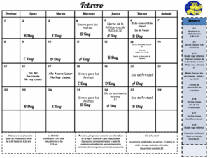 Febrero calendario escolar (en español)